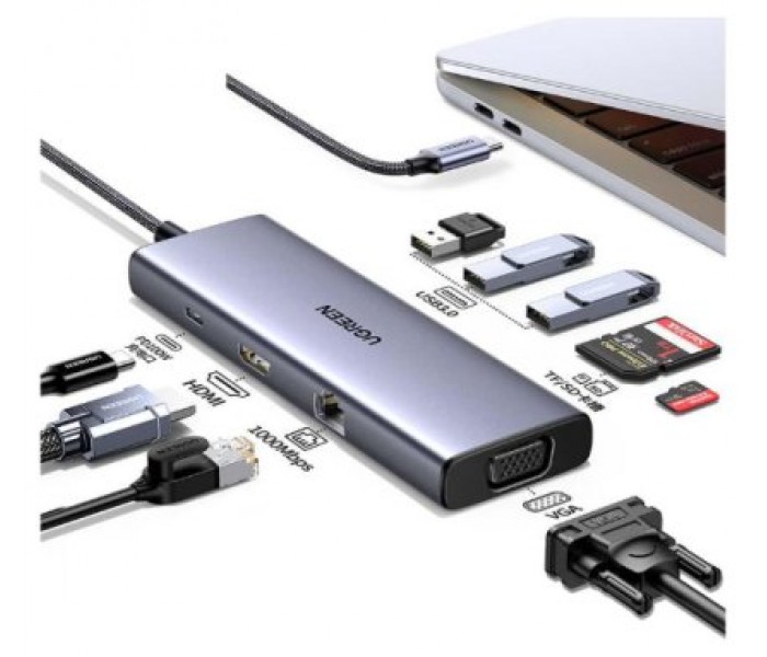 UGREEN USBC TO 3USB 3.0 A HDMI VGA RJ45 GIGABIT SDTF PD CONVERTER 9 IN 1